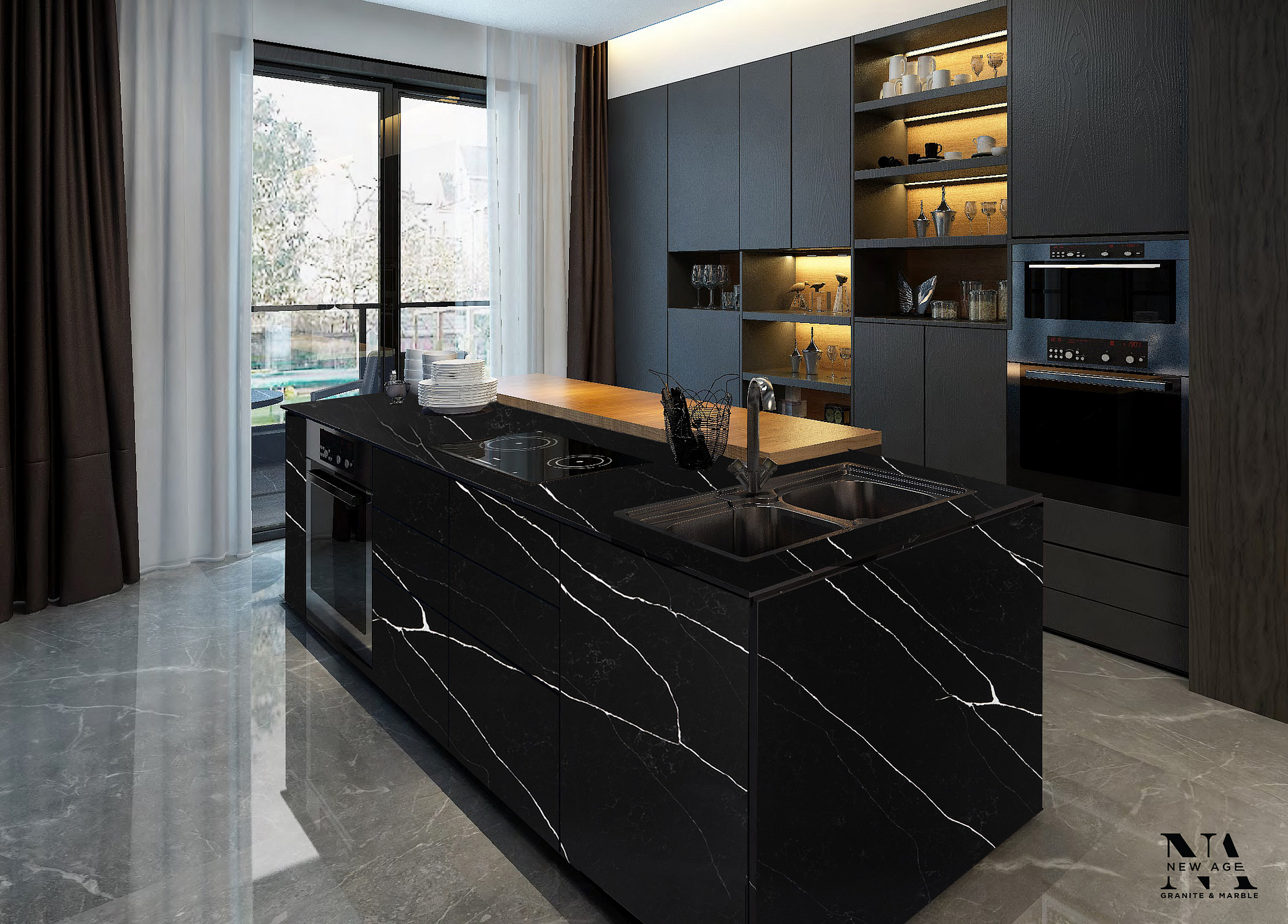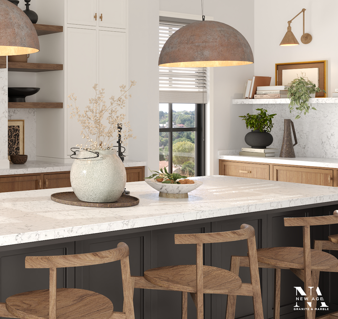 Marina Quartz graces this kitchen, infusing it with a serene and tranquil ambiance. Its gentle tones and subtle veining create a space that merges modernity with a calm and old fashioned allure, making every moment in the kitchen a peaceful retreat.